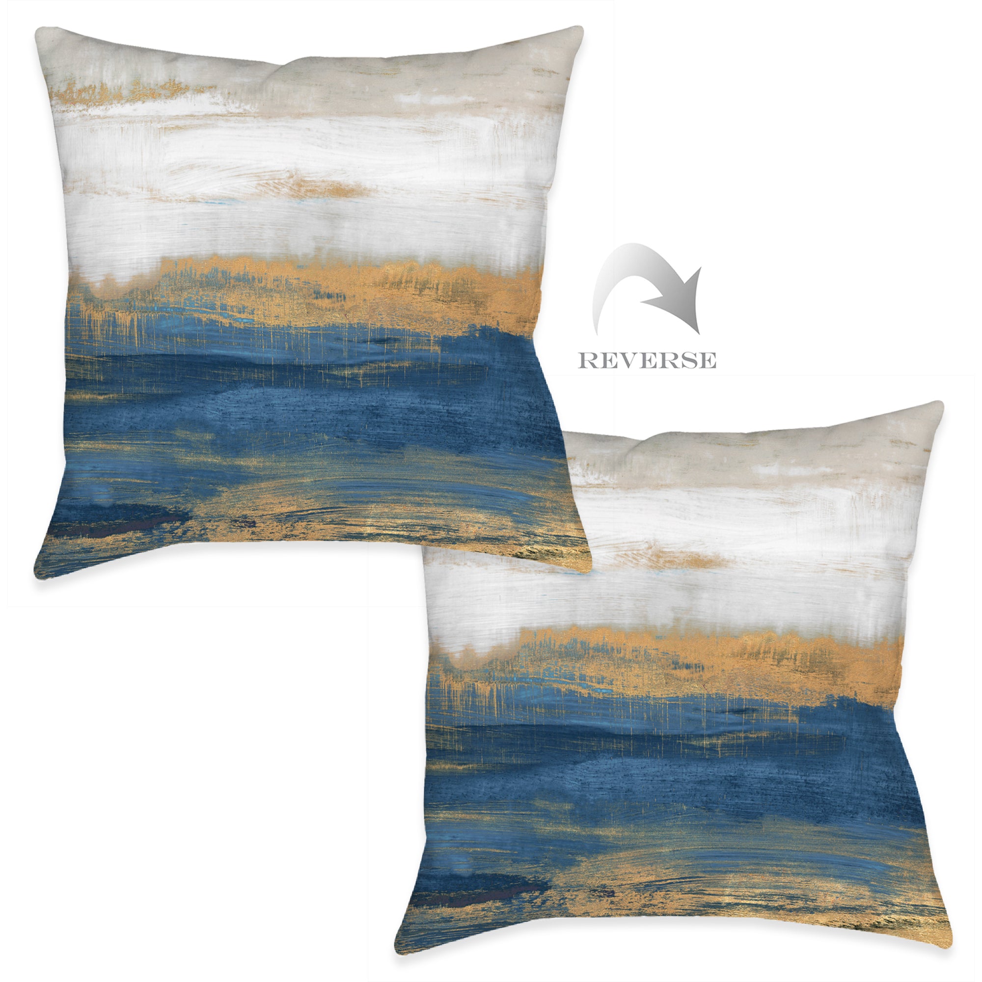 This abstract style outdoor decorative pillows, "Blue and Gold Serenity," will give a calm and...
