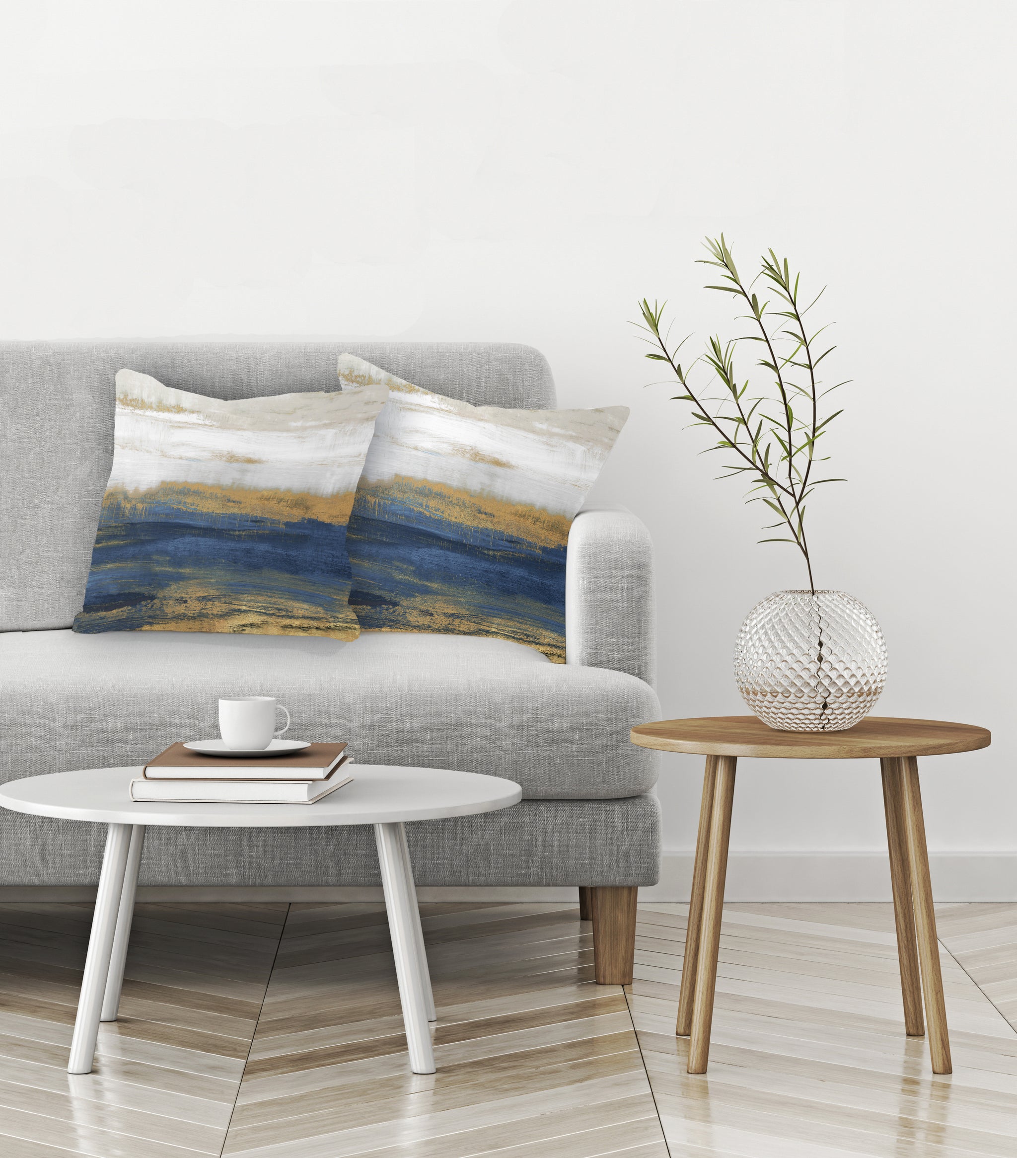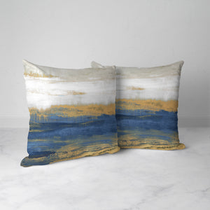This abstract style indoor decorative pillows, "Blue and Gold Serenity," will give a calm and...