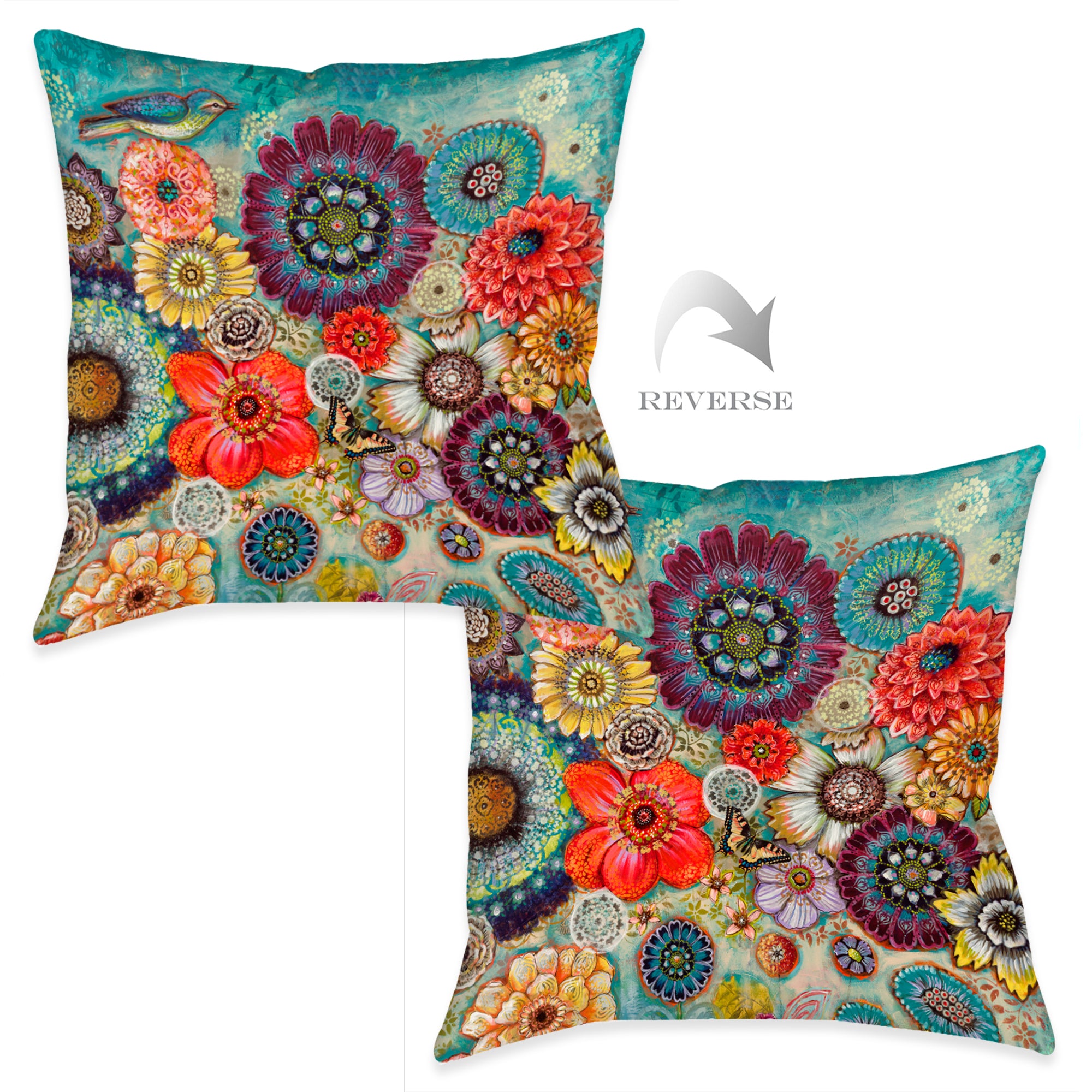 The "Boho Butterfly Garden Indoor Decorative Pillow" features digitally printed, original artwork of hand painted,...