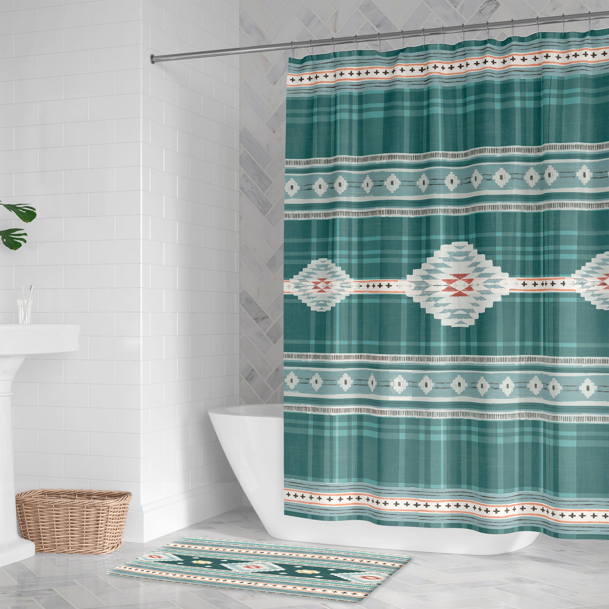 The shower curtain, A Peaceful Retreat, features a secluded cabin surrounded by nature's wonders. With...