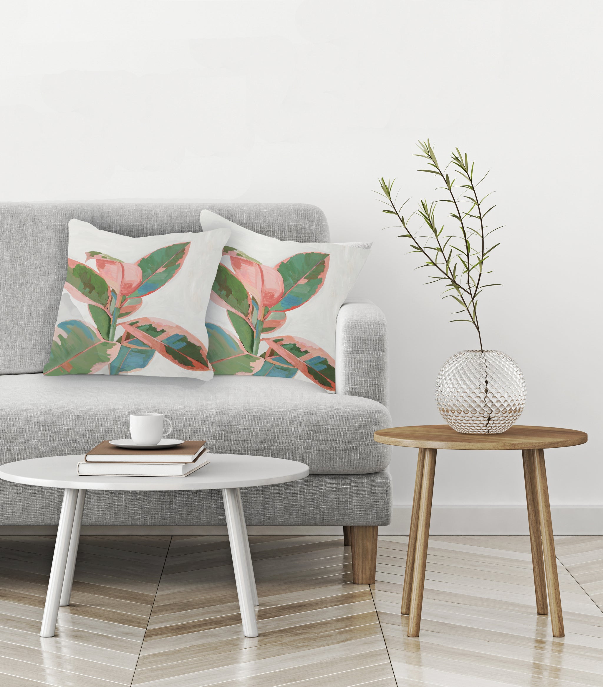 This floral indoor decorative pillow, "Plant Life Ficus," is a warm and subtle home decor...